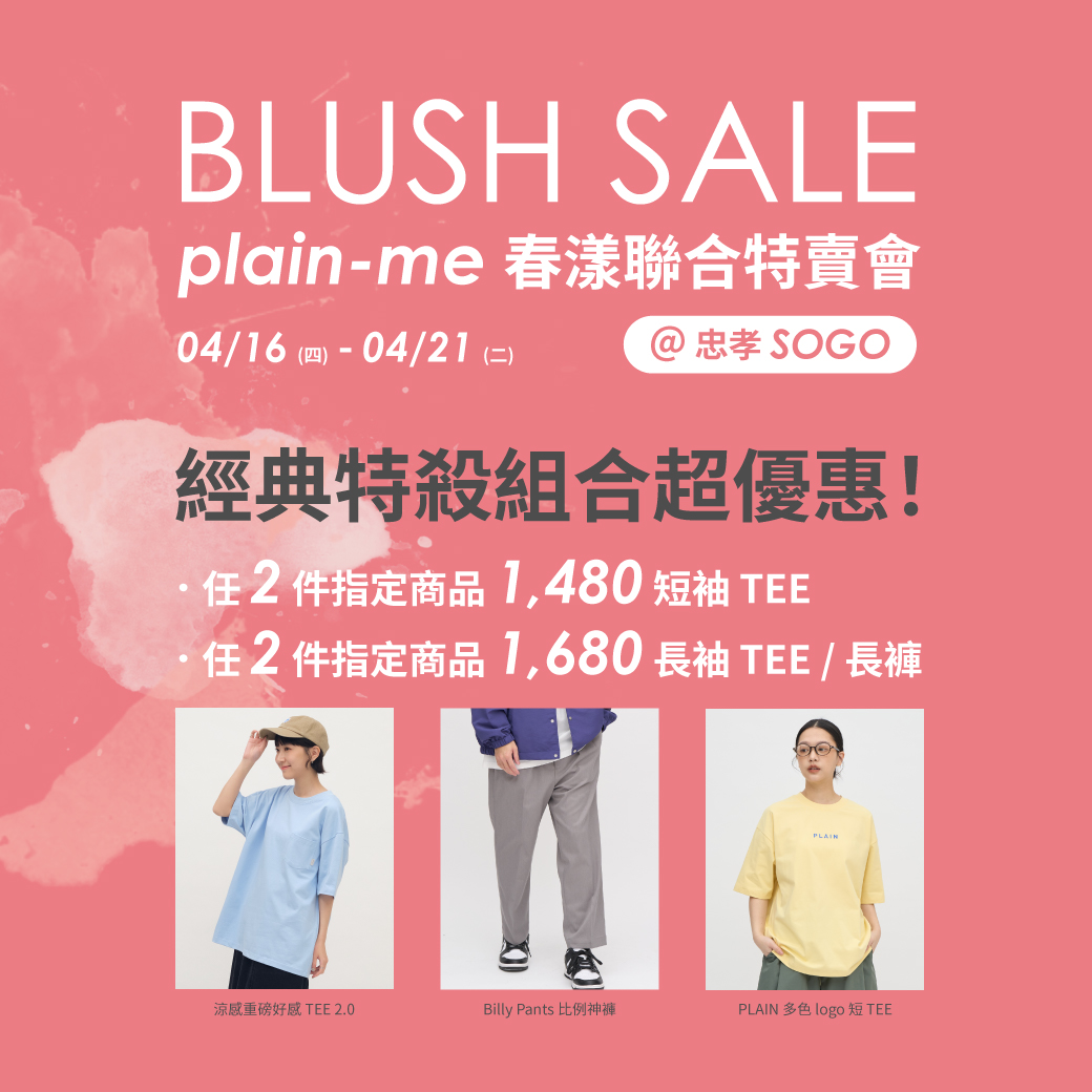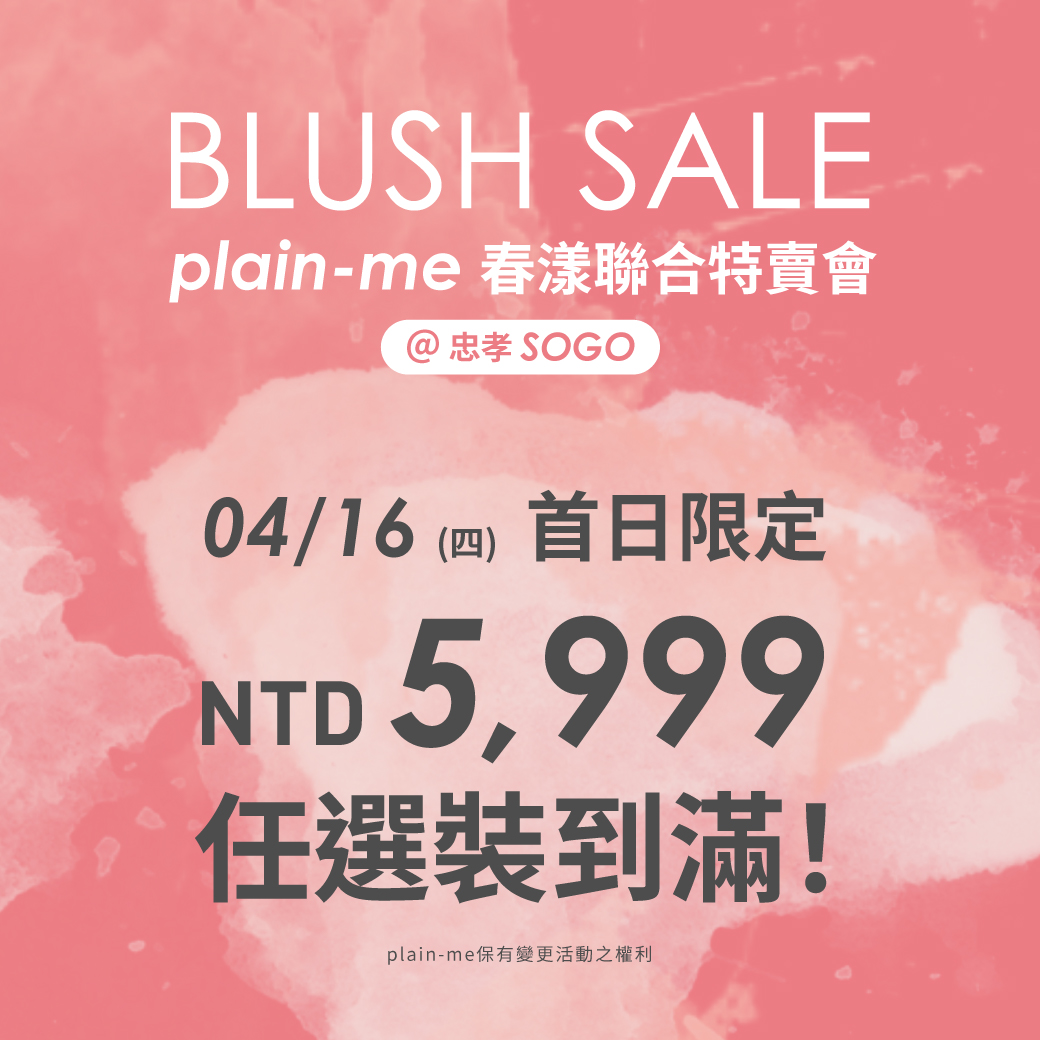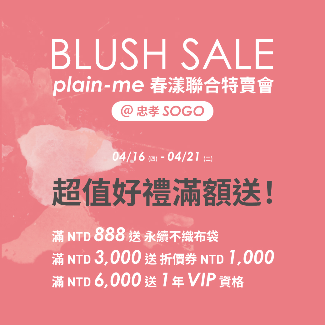 。NTD 3,000,送 plain-me 電子折價券 1,000 元 (敦南店 / 官網限定使用)
